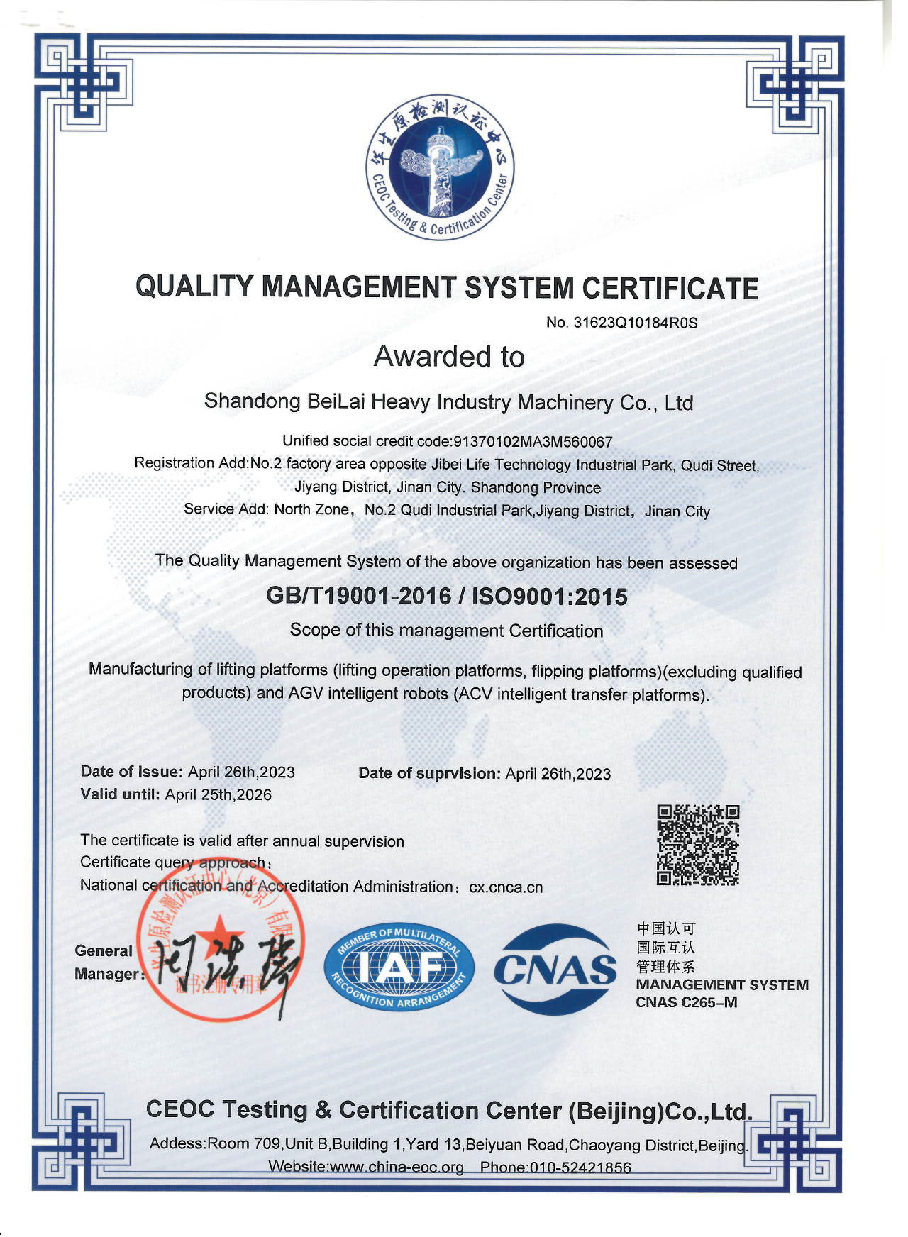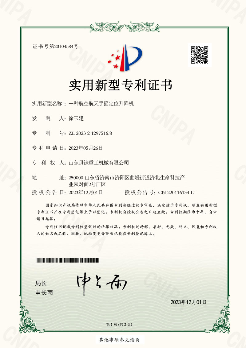 山東貝錸重工機械有限公司,位于泉城濟南市,公司注冊資金6800萬元,是一家專注于液壓升降機,液壓貨梯,翻轉機械,旋轉機械,各種垂直裝配工裝等產品研發,設計,生產,銷售,安裝一體化的創新型企業,多年來全心致力于為客戶提供更高效安全的,升降裝配解決方案,憑借優良的產品獲得客戶的一直認可。